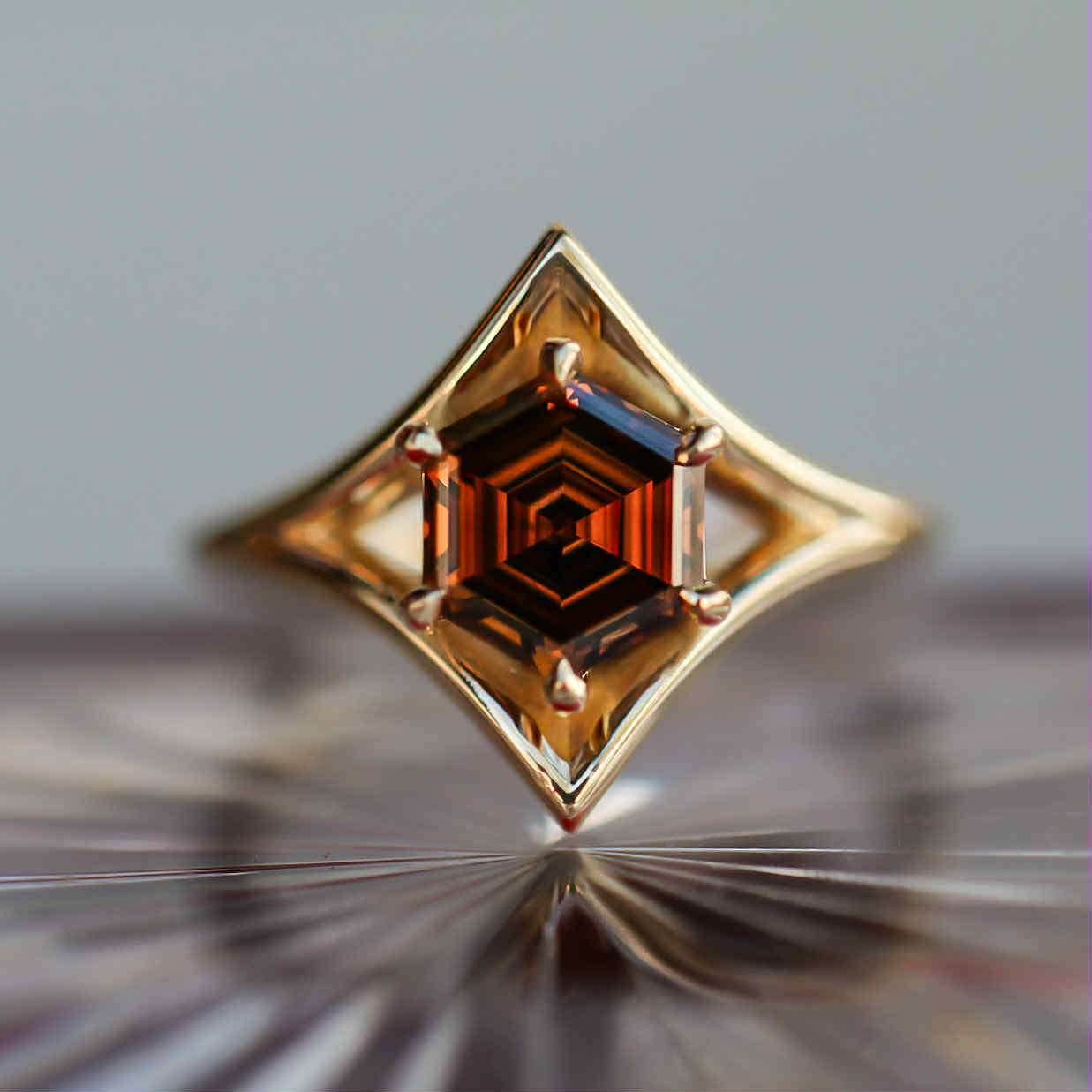 Autumn Spice 18K Gold Diamond Ring – 1.94ct Fancy Deep Brown-Orange Hexagonal